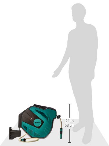 - Schlauchtrommel mit automatischer Aufrollung und 35 m langem Schlauch; ideal für kleine Gärten und Terrassen