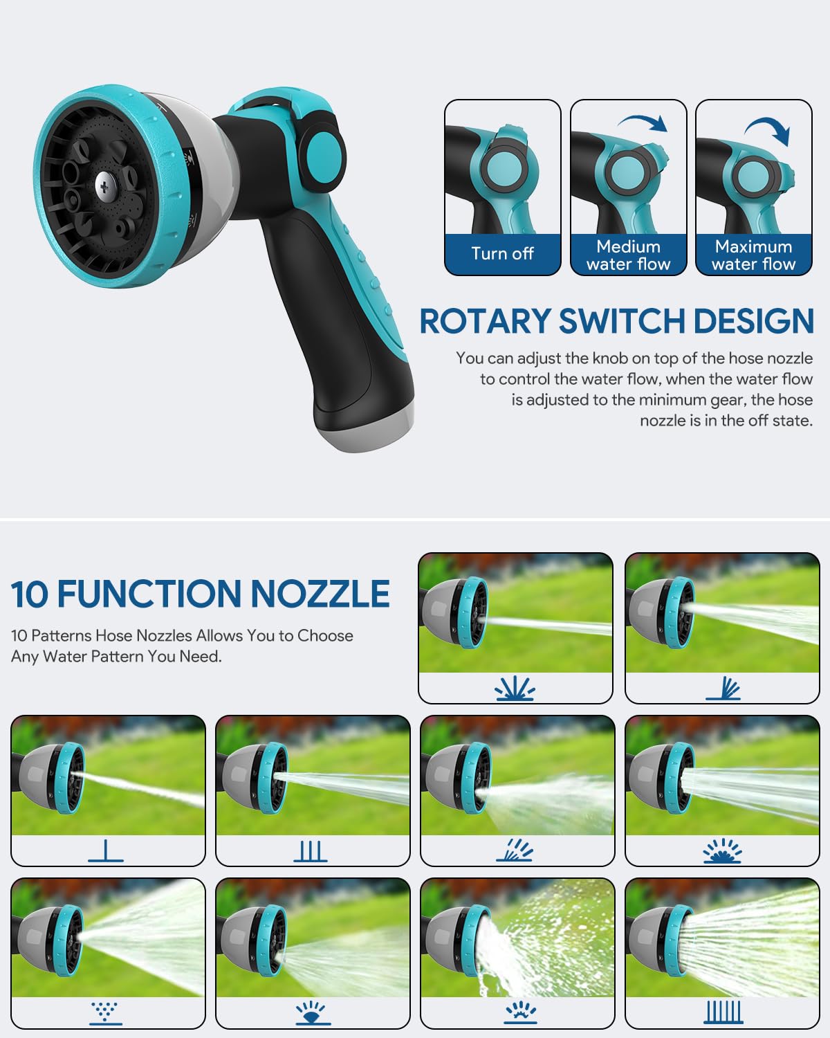- 🌼【10 MUSTER BEWÄSSERUNGSSCHLAUCHDÜSE】 Der Schlauch mit 10 Mustern Schlauchdüse ermöglicht es Ihnen, jedes Wassermuster zu wählen, das Sie brauchen. Egal, ob Sie Ihren Garten bewässern, Ihre Blumen gießen, den Boden abspülen, Ihr Haustier baden oder die Flecken von der Oberfläche Ihres Autos abspülen müssen, es ist für Sie da! Mit dem eingebauten Griff können Sie ihn leicht tragen.
