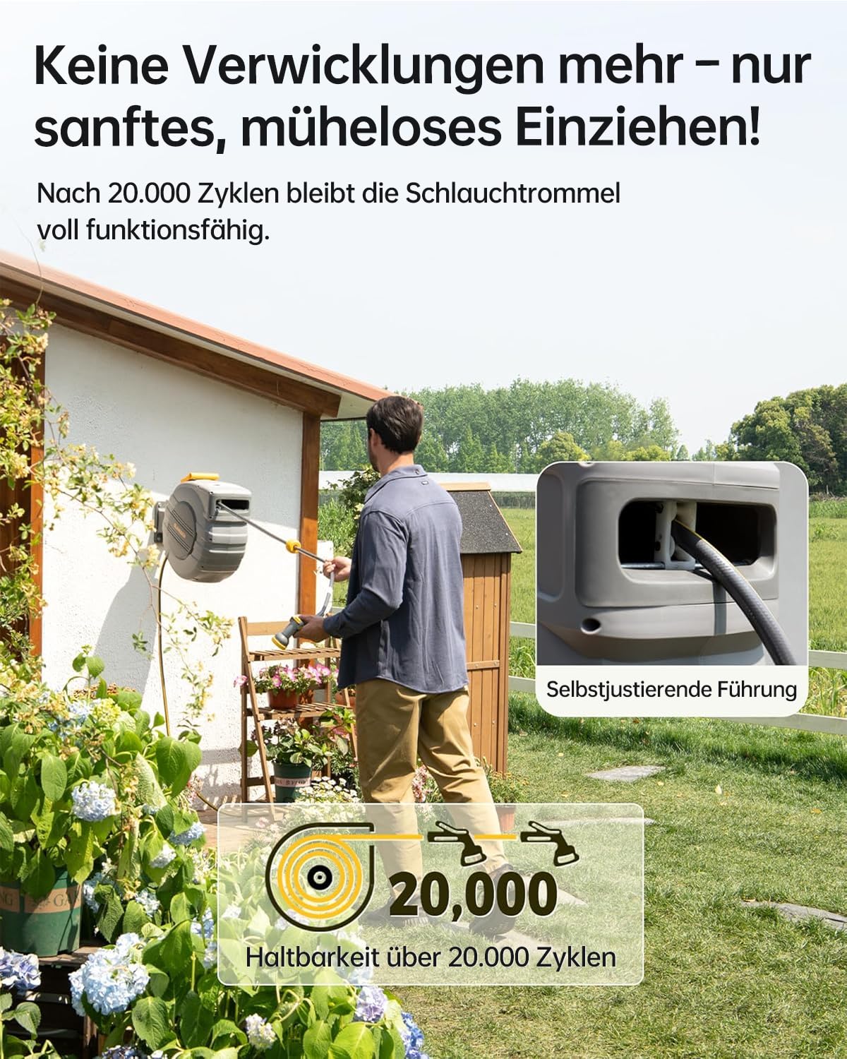 - Sonnen- und frostbeständig Haltbarkeit: Entwickelt für den Außeneinsatz, verfügen diese Schlauchtrommeln über eine Sonnenbeständige Beschichtung, die bei Temperaturen von -20℃ bis 50℃ getestet wurde. Sie verdoppelt die Lebensdauer, indem sie Rissen, Verblassen und Witterungsschäden widersteht.